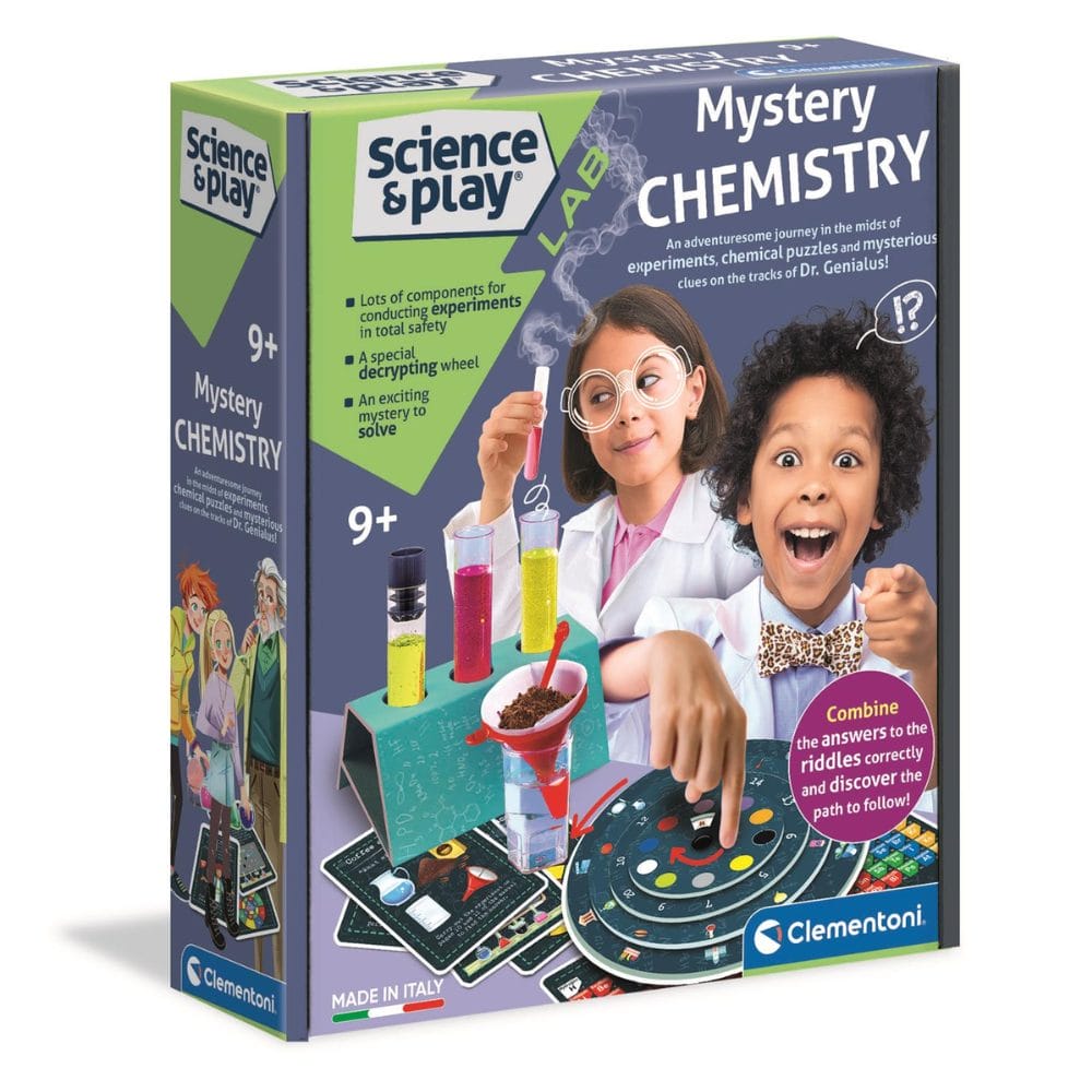 Science becomes an adventure with the Clementoni Science and Play – Mystery Chemistry kit. This unique set is part science experiment and part mystery challenge, inviting children to think like real investigators as they solve puzzles and uncover clues.