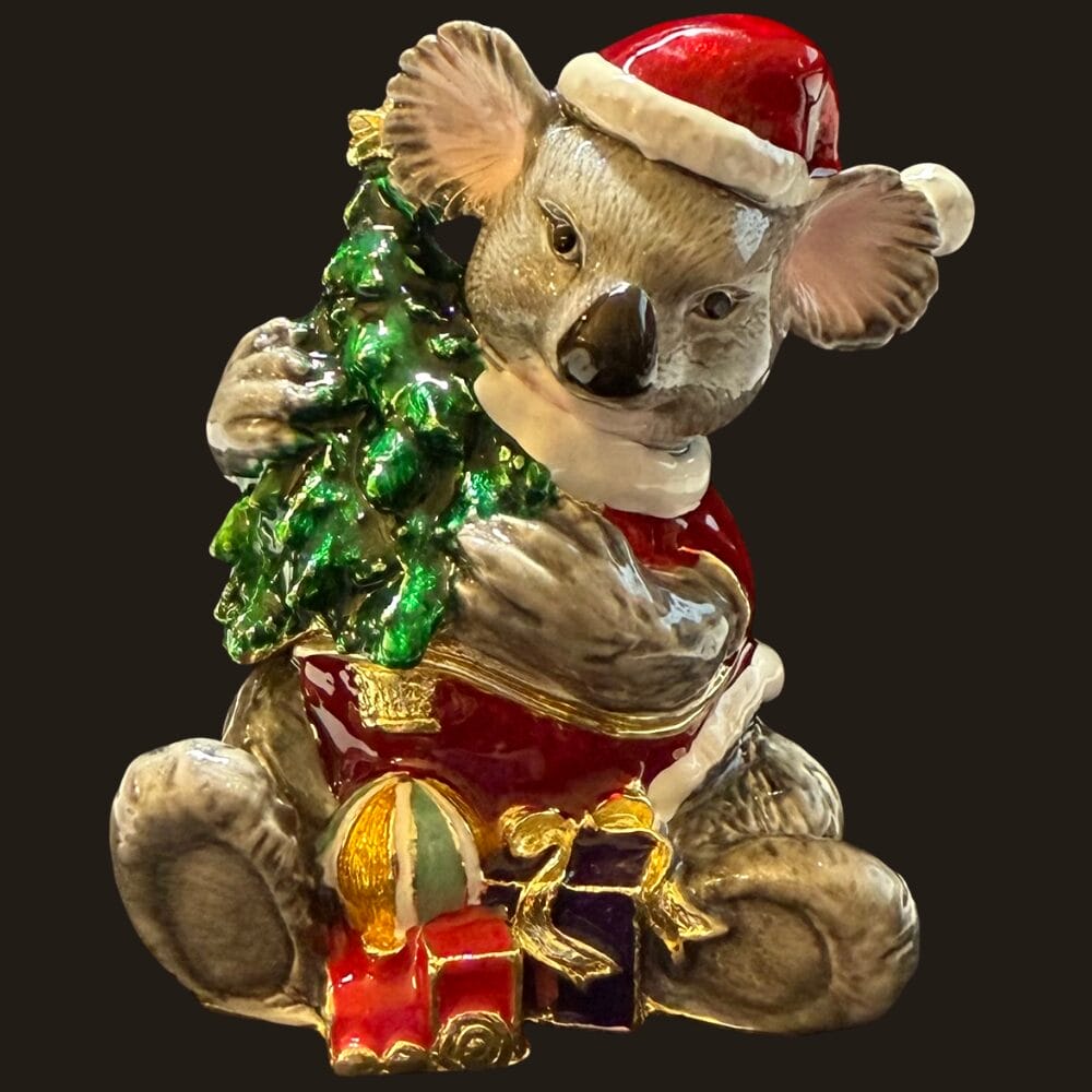 Introducing the Deva Trinket Box – Christmas Koala, a truly delightful piece that captures the spirit of the festive season.