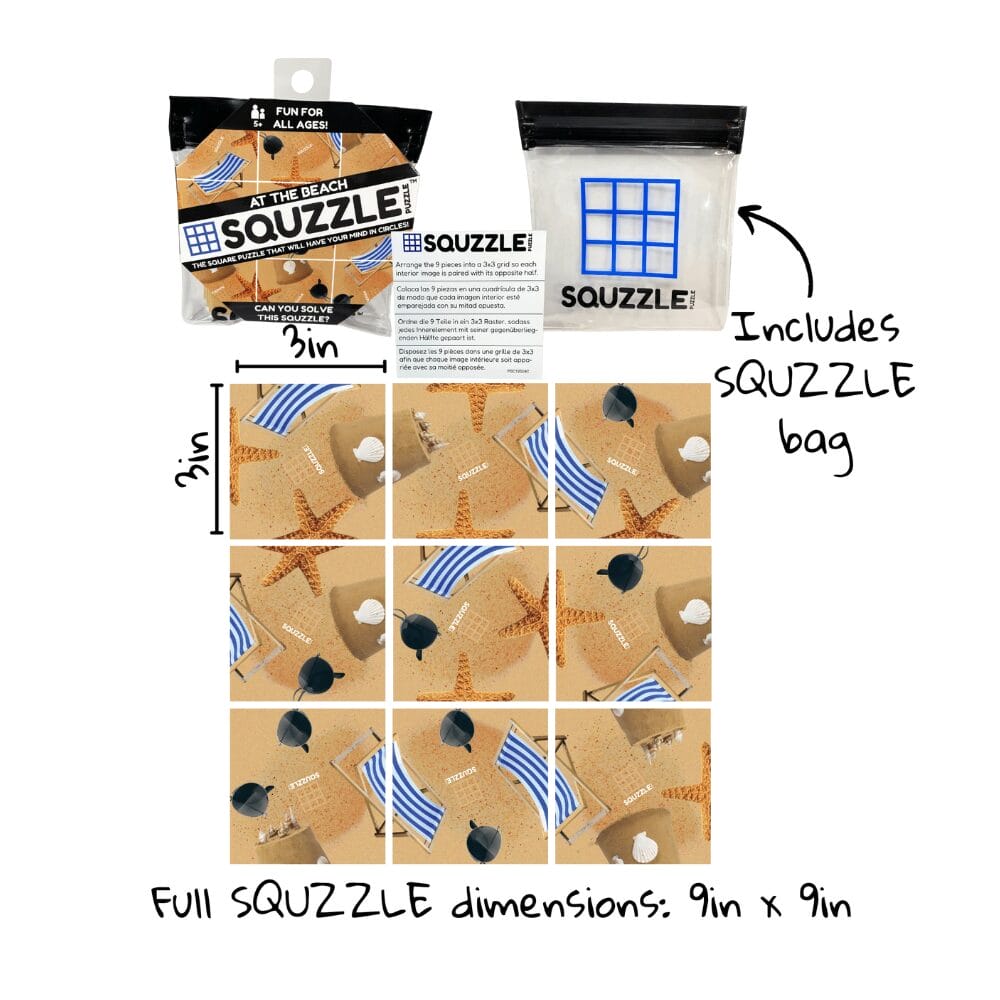 Introducing Fun2 – Squzzle Puzzle – At the Beach, a delightful nine-piece square puzzle designed to bring the joy of beach adventures to life!