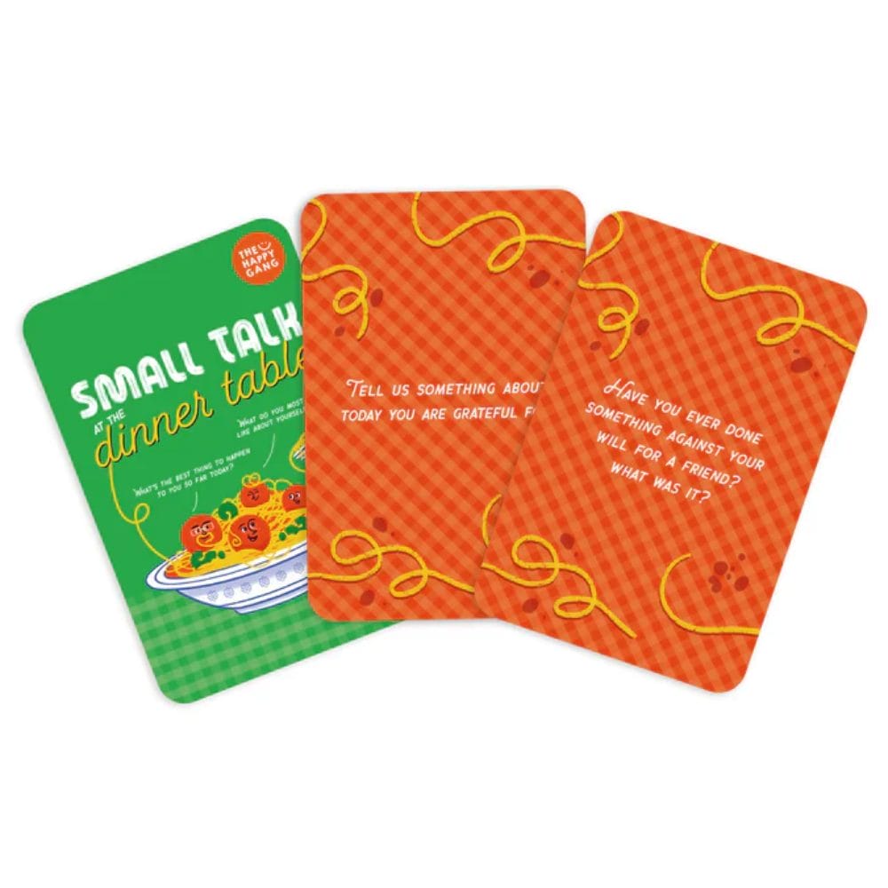 The The Happy Gang Small Talk at the Dinner Table is a thoughtful and engaging activity set designed to spark meaningful conversations and bring families closer together. Filled with fun, reflective, and sometimes thought-provoking questions, this set turns everyday mealtimes into moments of connection.