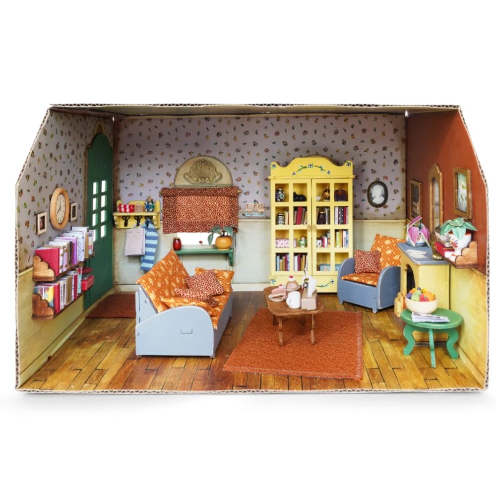 The Mouse Mansion – Cardboard Room: Living Room is an easy-to-assemble play space that adds warmth and storytelling to Sam and Julia’s world. Designed for imaginative role-play, it pairs perfectly with the Furniture Kit – Living Room to create a complete miniature scene. A calm, screen-free way to expand creative play.