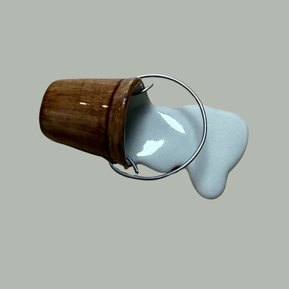 This delightful miniature features a meticulously crafted design of a bucket with spilt milk, showcasing a playful, realistic depiction that is sure to draw attention.